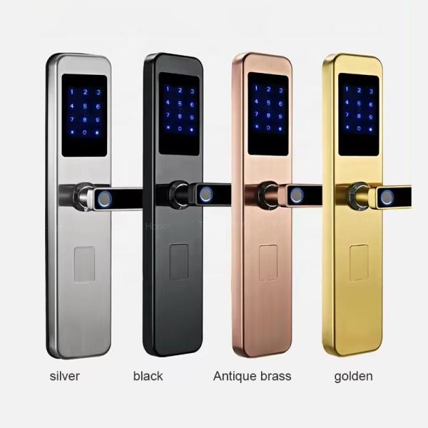 Hotel Smart Locks, with its product name being High Class RFID Hotel Door Lock, are of light weight and available in four colors: black, gray, copper and green. It is made of ANSI 5 Latch Mortise and specially designed for hotels, apartments, rent rooms and other places. It is a half automatic handle door lock, which is easy to install and can provide a higher level of security. It is also an Apartment Smart Door Lock that can be used to control access to different areas. It is a great choice for those who need a reliable and secure door lock system.